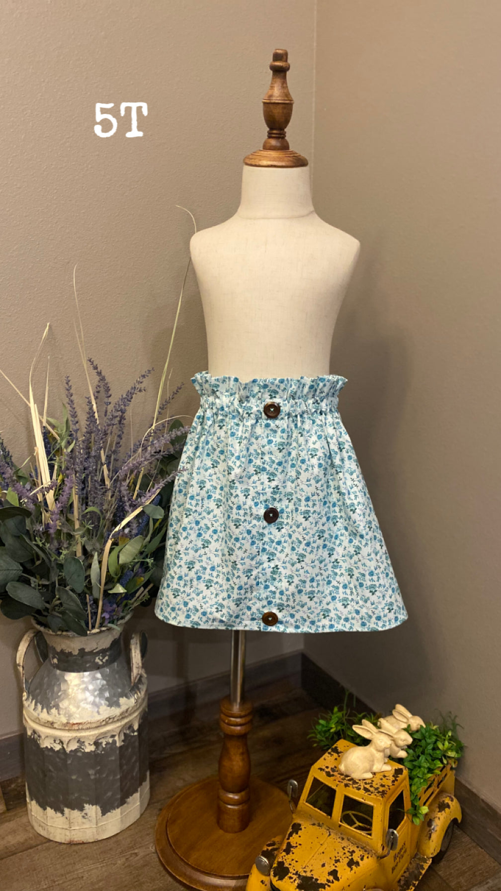 Blue floral little girl skirt with elastic waistband.