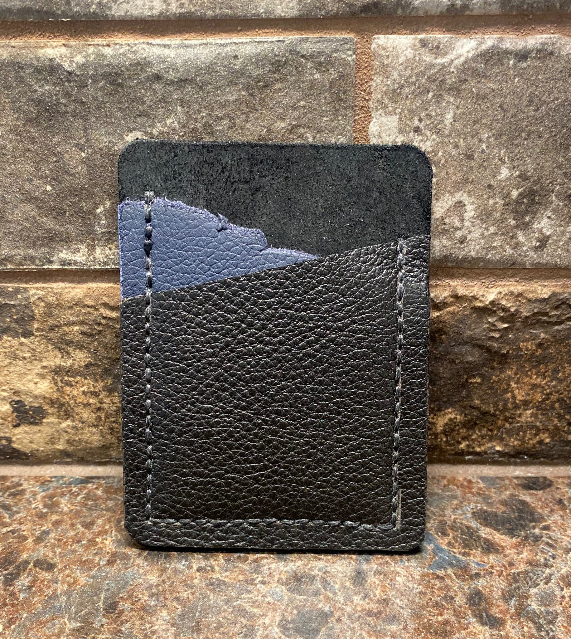 Hand sewn black & blue double slot card/money holder made with real leather.
